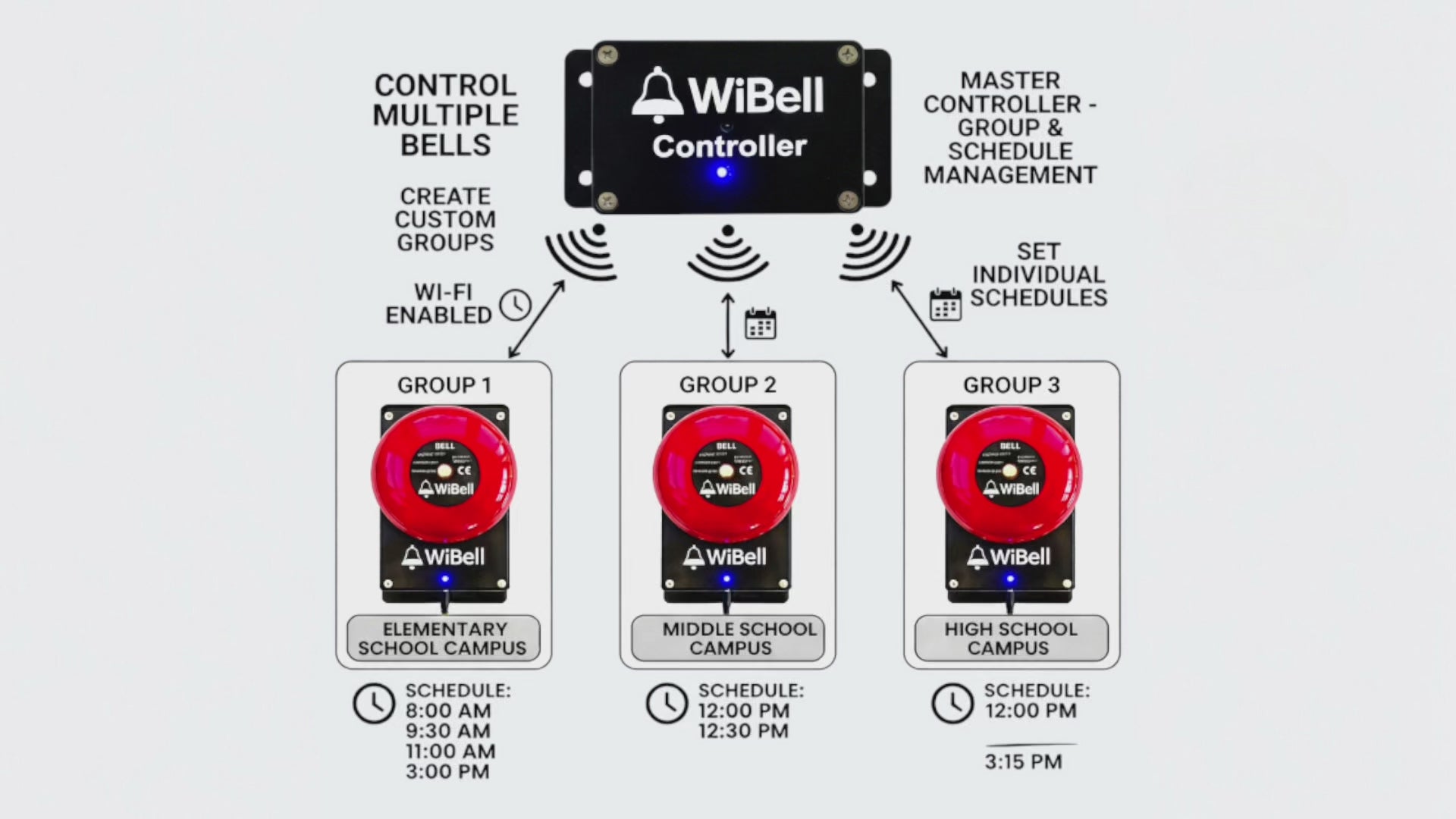 - Centralized control for multiple WiBell devices